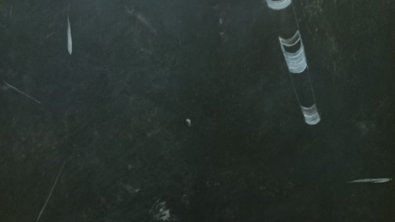 Ortoceratiterna gjordes genom att göra två riktlinjer och sedan rev jag av ett tjockt papper som drogs mellan linjerna i en bågform. Miniortoceratiter gjordes endast som avsmalnande sträck. Små runda fossiler gjordes genom att en svinborstpensel pressades mot ytan och roterade ett varv. Efter torktid fylldes alla fossiler i med vitt för verkligare effekt.